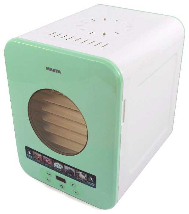 Комфортная сушилка. Очень нравится, что пластик прозрачный и видно, как слушаться врукты или грибы, Таймер и регулировка температуры. В целом вообще, по всем параметрам.ю изделие, меня устраивает и не достатков, в её работе, пока, не наблюдаю. Если, что дополню отзыв, нуа пока всё идеально. Покупайте, не сомневайтесь. Бренд MARTA - рекомендую.