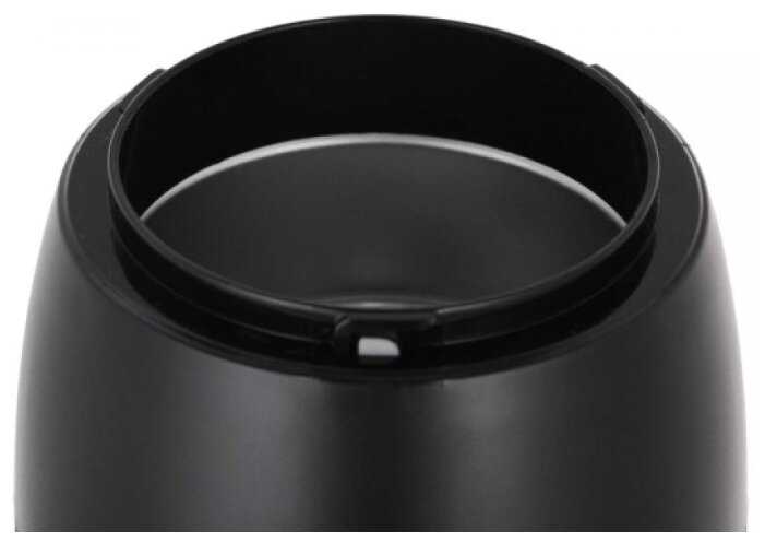 Эргономика устройства вызывает противоречивые оценки. С одной стороны, компактные размеры (высота 18 см, диаметр 12 см) и вес 800 г позволяют легко хранить кофемолку даже в маленькой кухне. С другой — вертикальная форма корпуса и гладкий пластик делают её неустойчивой на неровных поверхностях. Это особенно заметно при работе с большими объемами зерен: вибрации заставляют устройство «ездить» по столу, что требует дополнительного придерживания рукой.