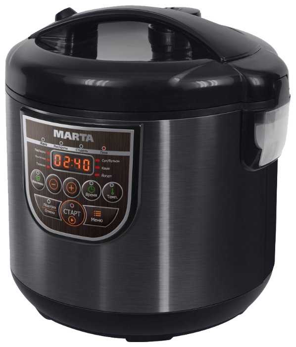 меню понятное, легко справилась, в инструкцию заглянула посмотреть как правильно включить. до этого у меня тоже была Марта, только 5 литровая. послужила почти 6 лет- время готовки стала путать.