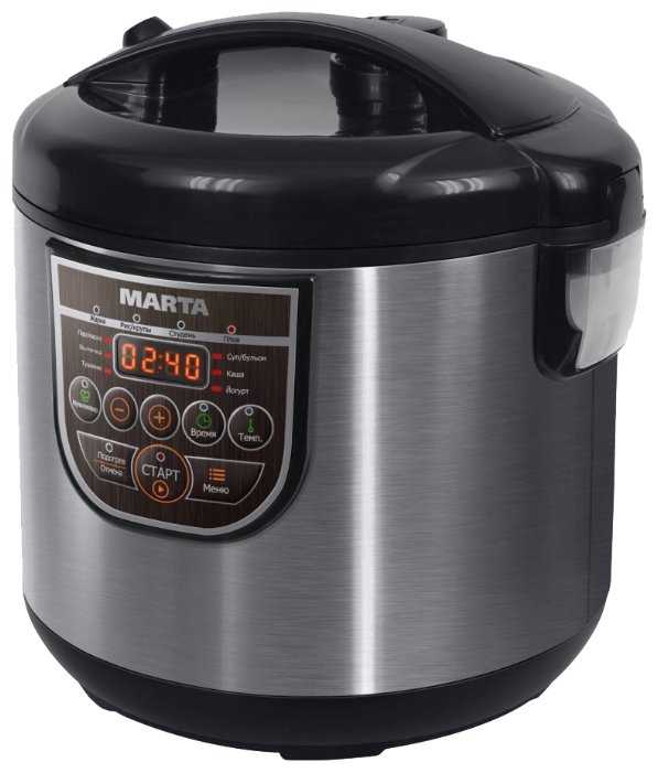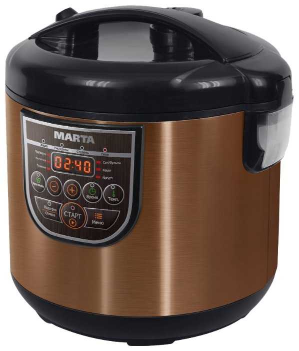 Отличная мультиварка, подарили такую родителям, они очень довольны. Много режимов готовки, легкая управляемость, разобрались даже пожилые люди :) красиво смотрится в интерьере кухни, чаша довольно объемная, к ней ничего не пригорает, провод довольно длинный. За эту сумму покупка отличная, жаловаться не приходится, у нас дома тоже Марта мультиварка, но немного другая модель.