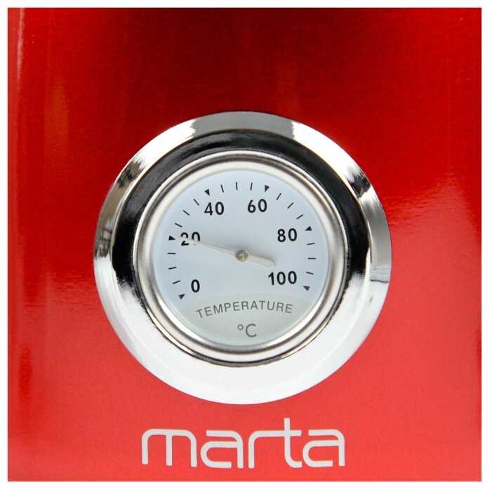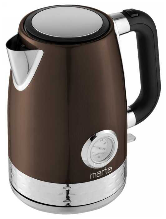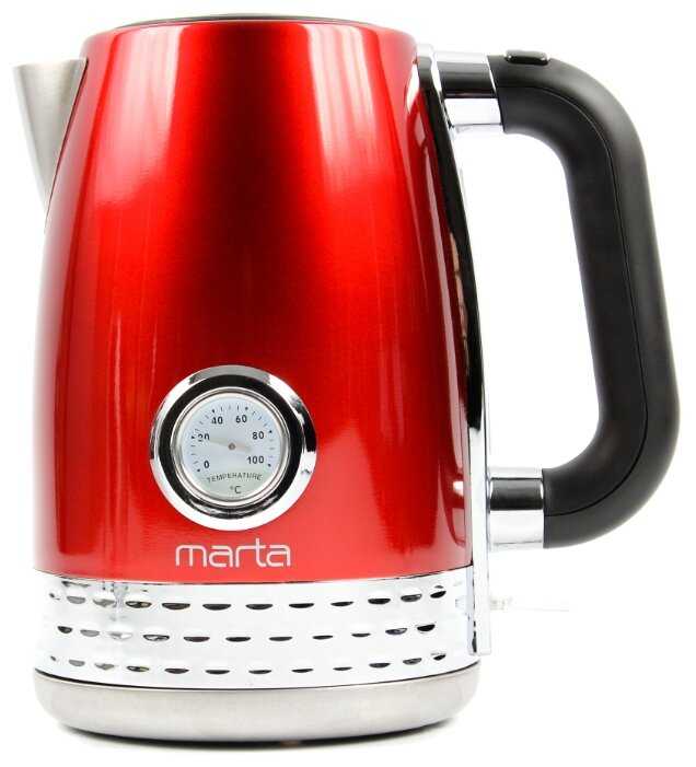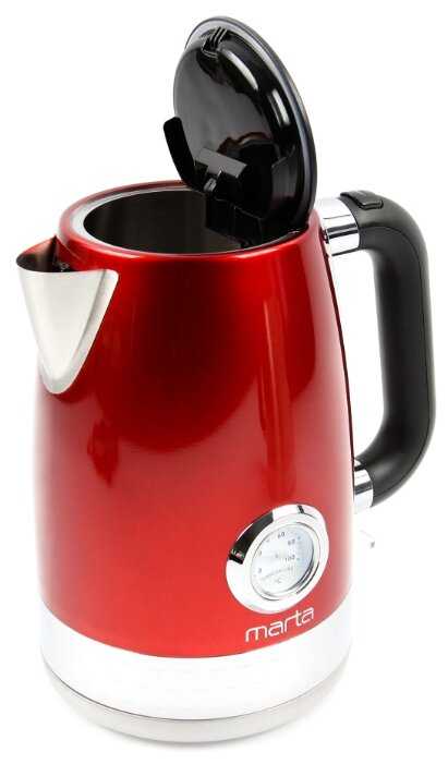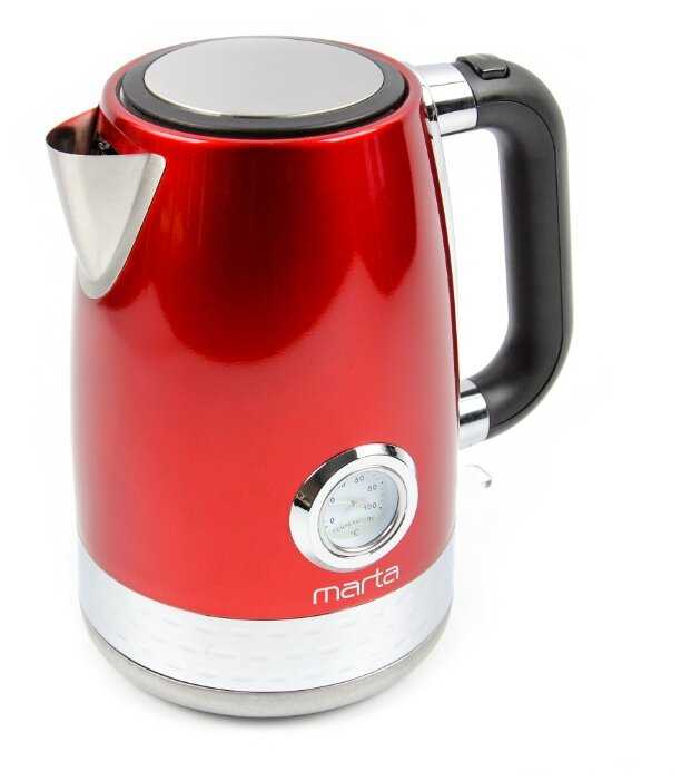 Чайник MARTA MT-4551 в бордовом гранатовом цвете - моя кухонная находка! Стильный дизайн, прочный и качественный материал. Нагрев воды быстрый и равномерный. Удобная ручка и удобство использования. Этот чайник стал неотъемлемой частью моего утреннего ритуала. Рекомендую всем!