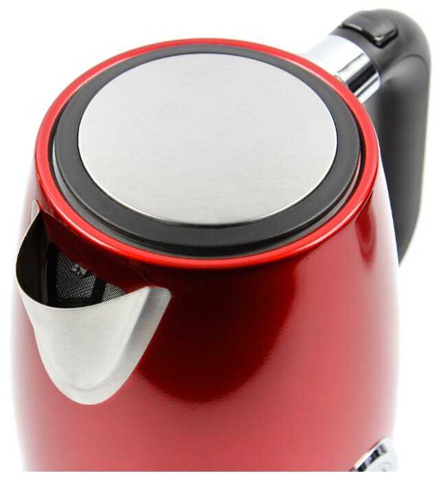 Красивенький чайник, удобный. Брал жене на работу, чтобы могла спокойно пообедать с чайком и печеньками. Сам по себе работает хорошо, красивый красный цвет, выглядит надёжно и дорого. Подсветка индикатора включения встроена в клавишу снизу и красиво смотрится. Так же у чайника присутствует индикатор температуры воды, а при ее закипании отключается сам. Металл - нержавейка. Жене понравилась покупка, удобная и практичная вещь, хоть и такая простая.