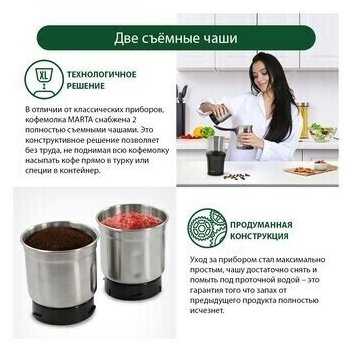 - + чаши съёмные и большие, удобно для измельчения круп и трав