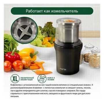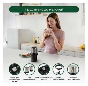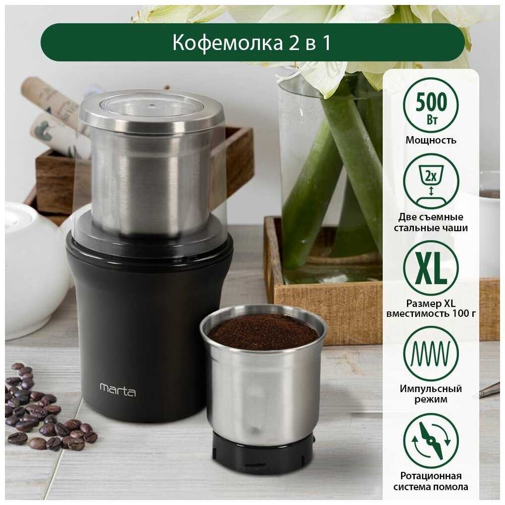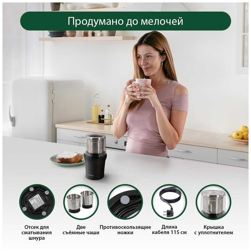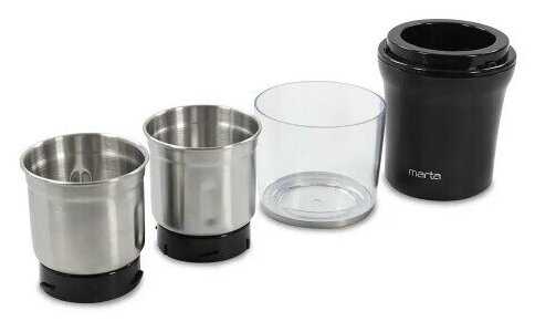 - + Наличие двух чаш для измельчения разных продуктов. Крышка с уплотнителем исключает рассыпание продуктов помола вокруг кофемолки.