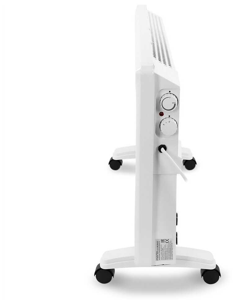 Конвектор легкий и компактный, что облегчает его переноску из комнаты в комнату. Для еще большего удобства перемещения в комплекте идут колесики, которые, по отзывам, легко собрать. Также предусмотрена возможность настенного монтажа, который оценивается как удобный, хотя некоторые пользователи отмечают, что крепление можно было бы сделать и надежнее. -