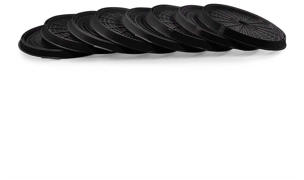 - В комплекте 6 или 14 поддонов, что позволяет сушить большой объем продуктов одновременно, как фрукты, овощи и мясо.