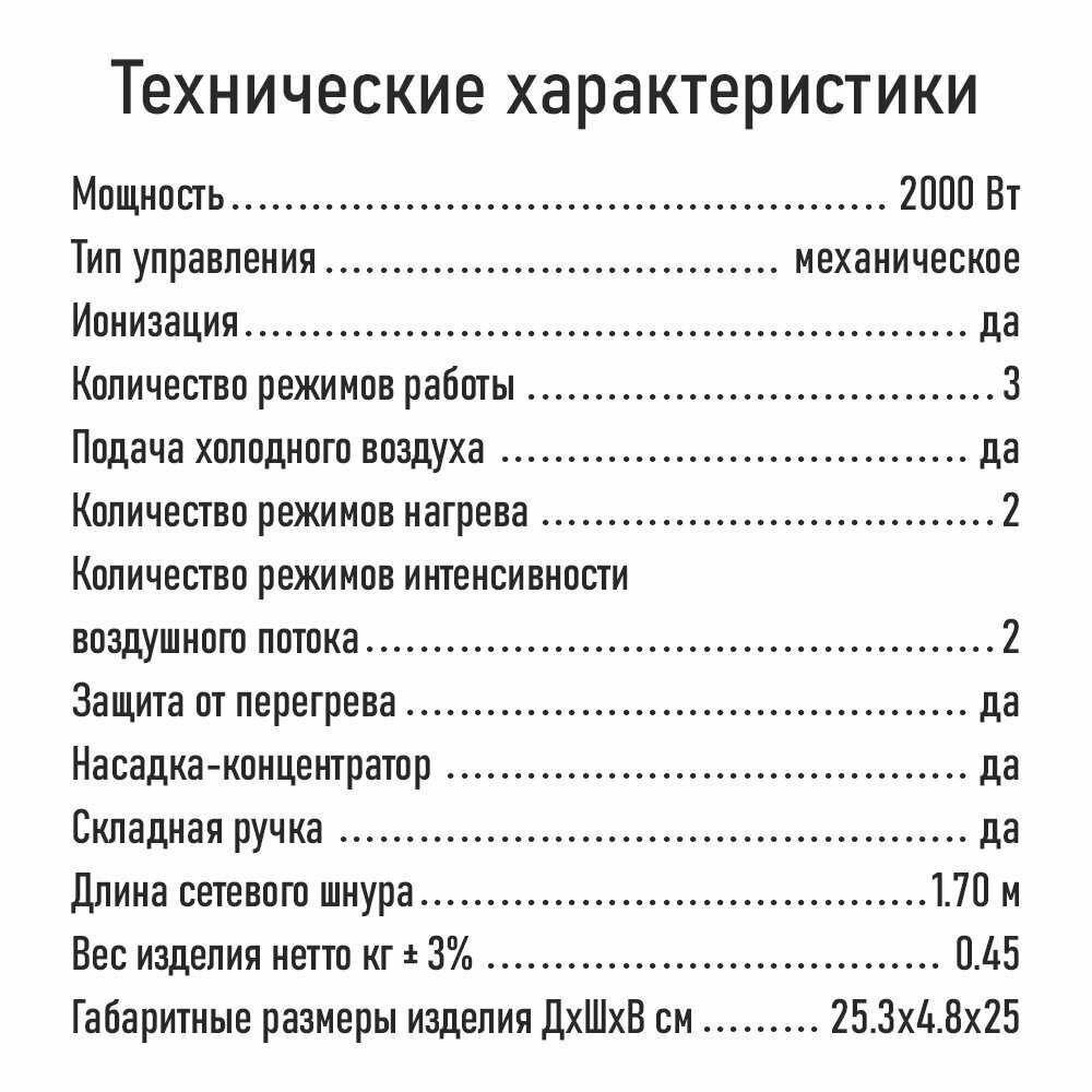 Мощность фена : | 2000 Вт |