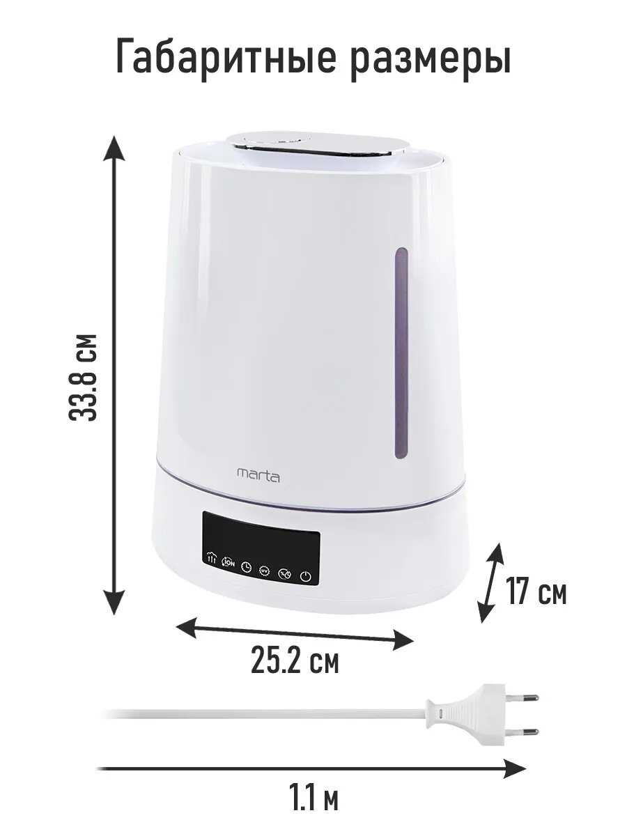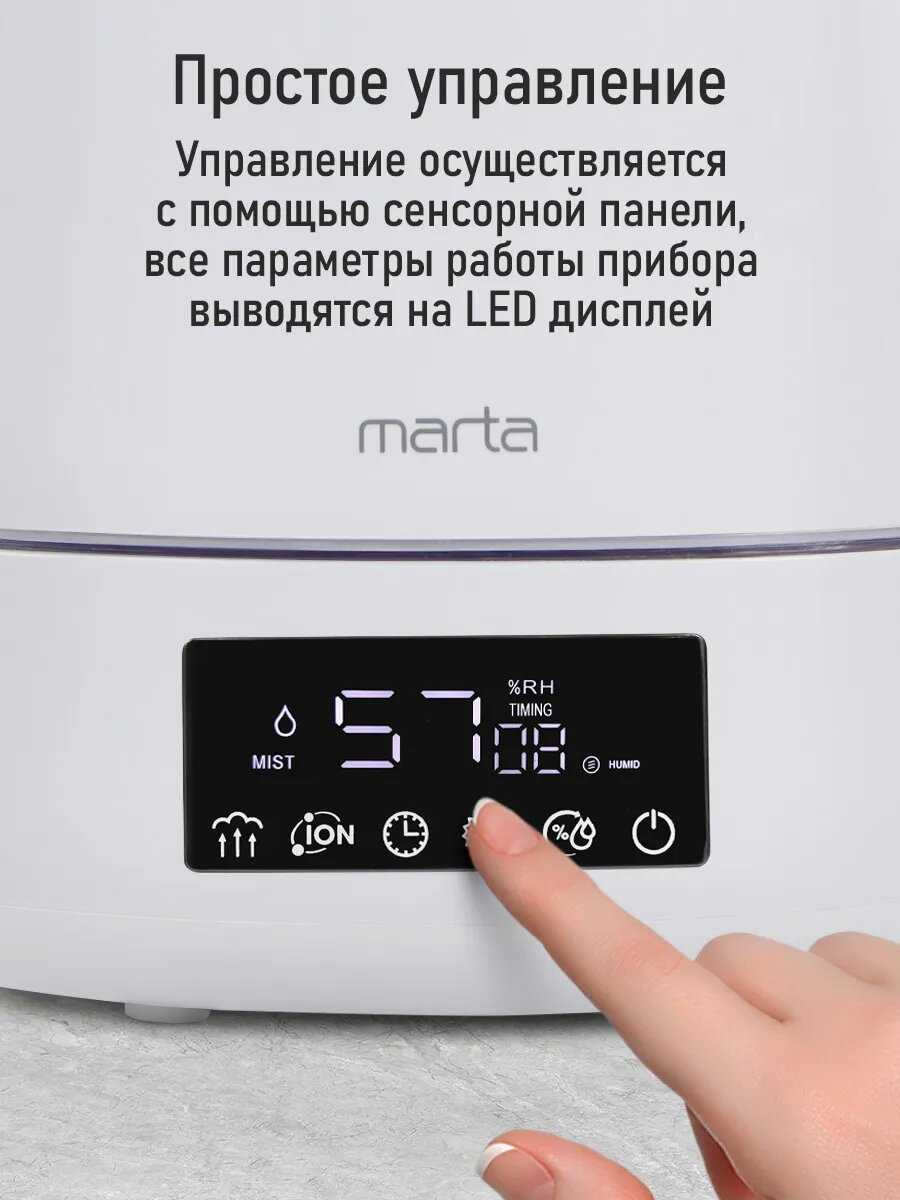 Отзывы о Увлажнители воздуха MARTA MT-HF4701D [верхний залив, УФ-лампа и тёплый пар]
