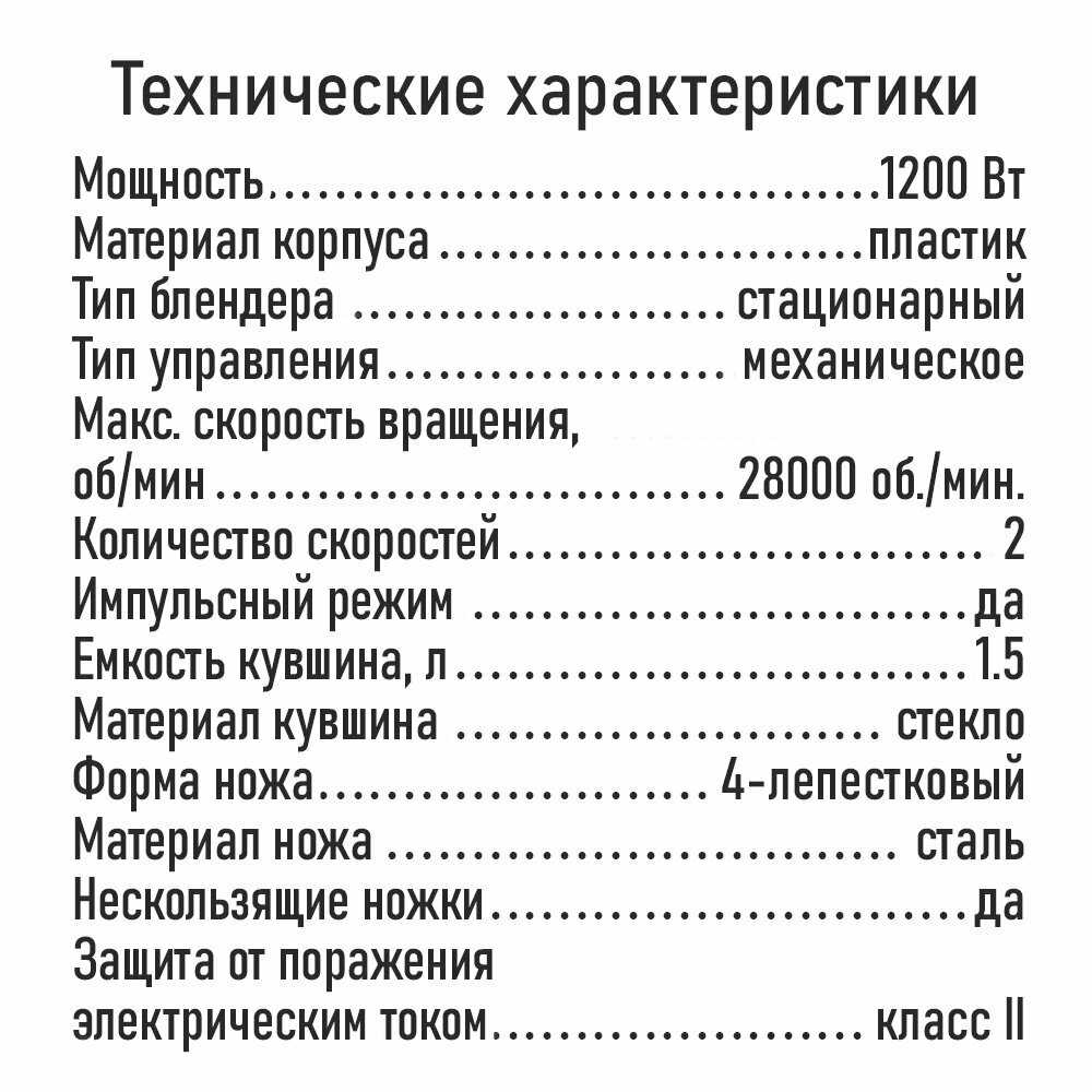 - Емкость кувшина: 1.5 л