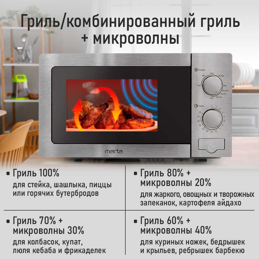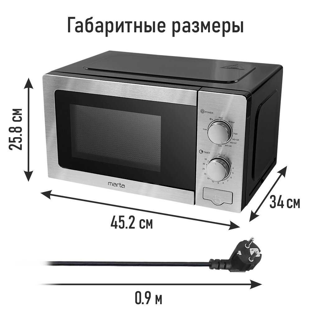 Черно-хромовый дизайн идеально вписался в кухню, а функционал и мощность устройства оправдали ожидания. Она проста в управлении и равномерно разогревает еду. Отличное сочетание цены и качества. Рекомендую всем, кто ищет надежную и стильную микроволновку!