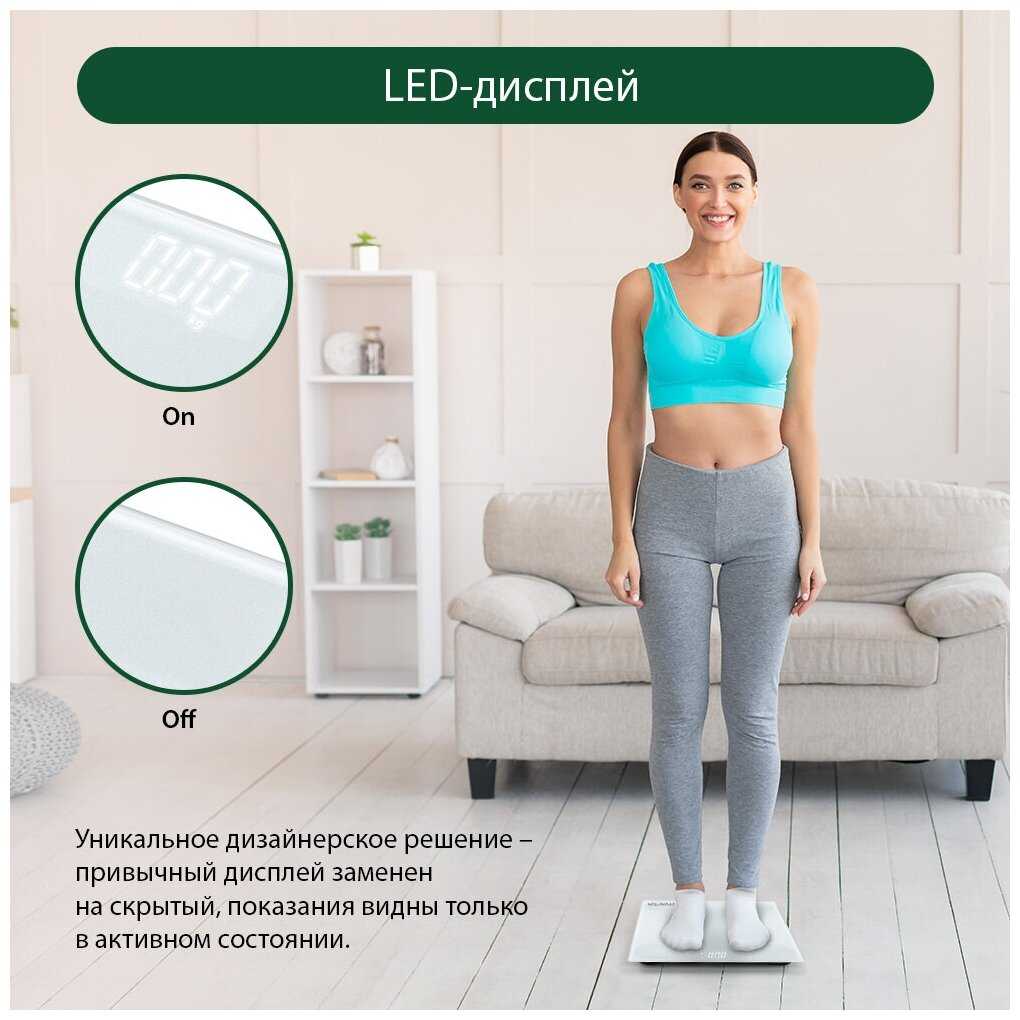 Дисплей отображает сначала температуру помещения, затем вес, но многие пользователи отмечают проблему с читаемостью: белые цифры на светлом фоне выглядят блекло и плохо различимы при обычном освещении. Подсветка отсутствует, что усугубляет проблему в затемненных помещениях. Яркость можно улучшить заменой батареек, как советуют в отзывах. -