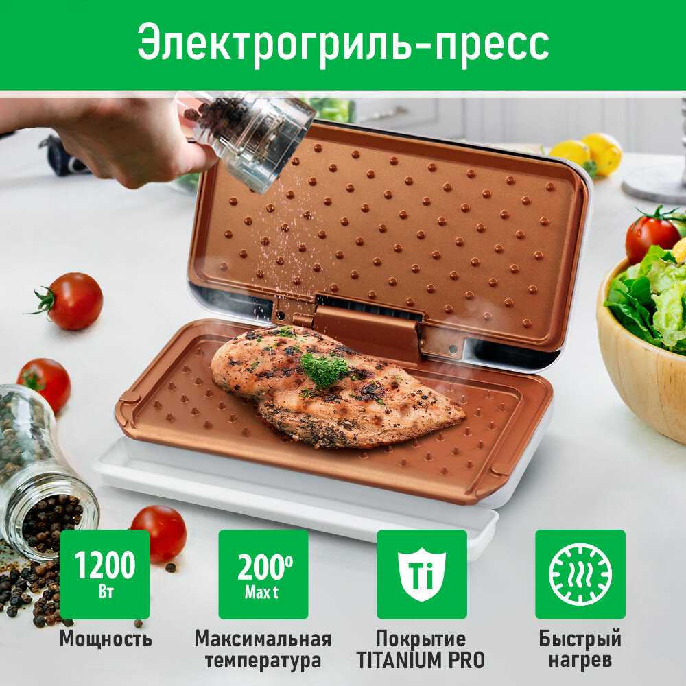 - Быстрое приготовление за счет двустороннего обжаривания сокращает время на готовку завтраков или перекусов.