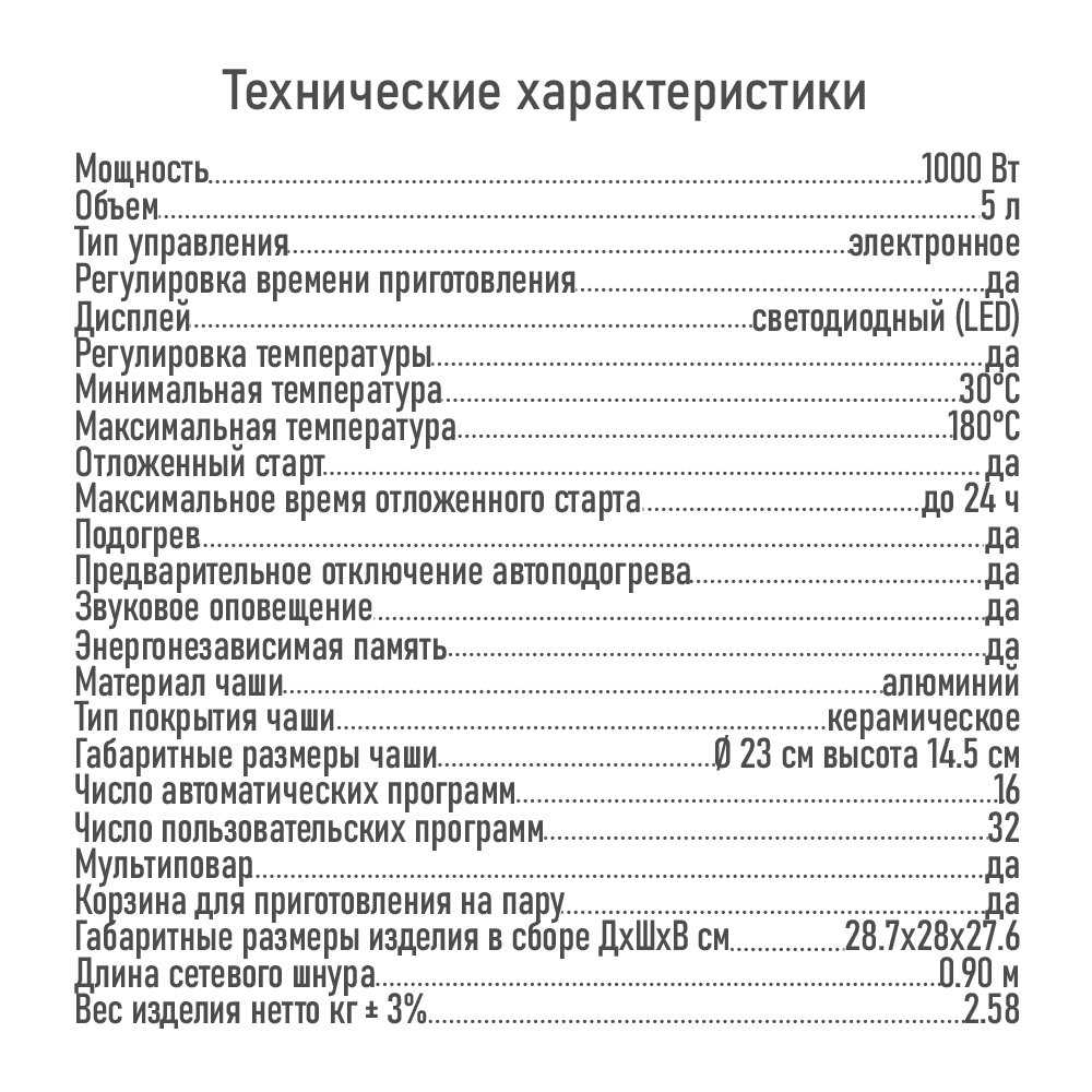 Дополнительные функции : | отложенный старт, поддержание тепла |