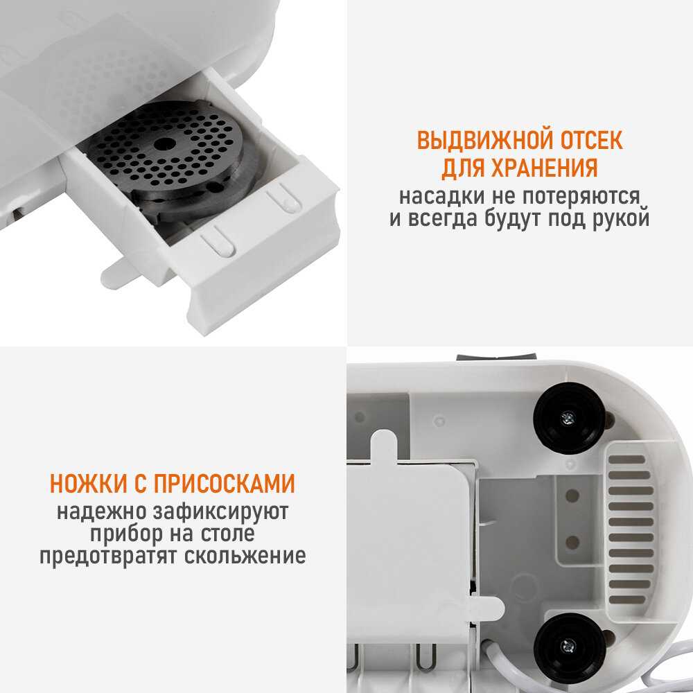 - + Мощная, не сильно шумит, качество получаемого фарша, комплектация.
