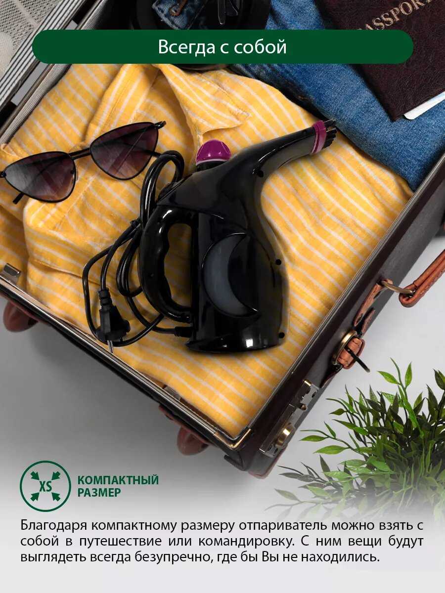 Отпариватель оценивается пользователями как очень компактный, легкий и удобный для хранения. Его небольшой размер и малый вес делают его отличным вариантом для использования в дороге или в условиях ограниченного пространства. Это практичное решение для тех, кто часто путешествует и нуждается в быстром способе привести одежду в порядок. -