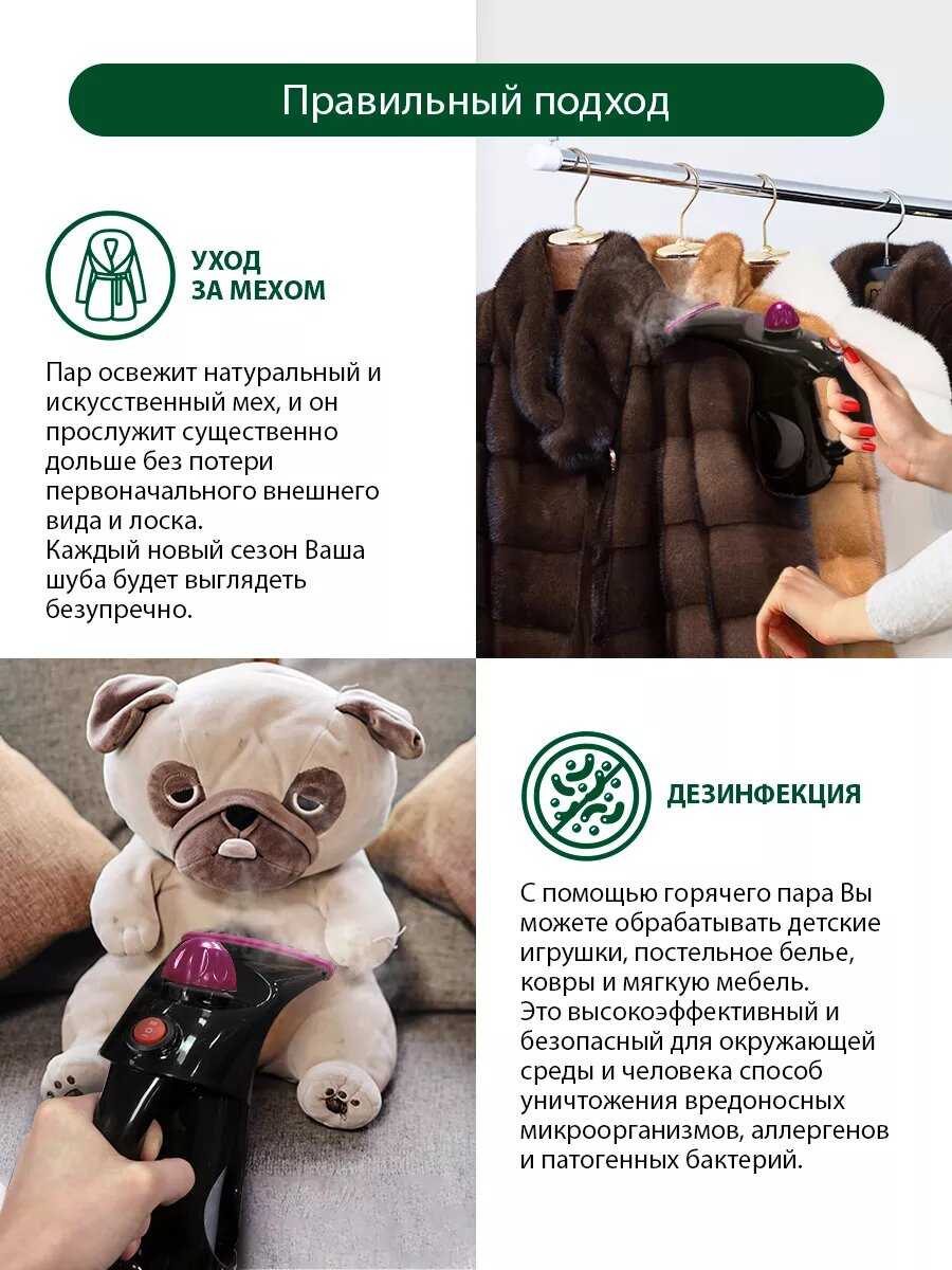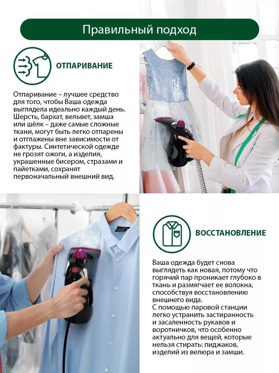 - Не устраняет глубокие заломы на хлопке и льне, требующие воздействия утюга.