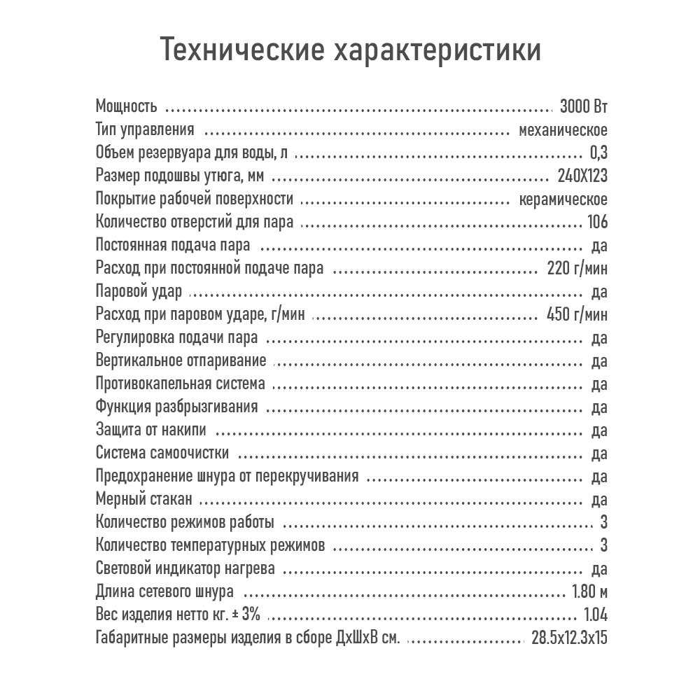 - дополнительные функции: регулировка подачи пара