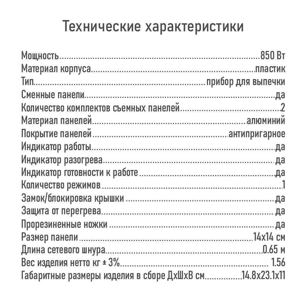 | Особенности : | антипригарное покрытие, индикатор работы |