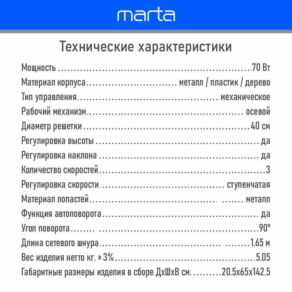Обзоры и руководства на Marta Вентилятор (MT-FN2539)