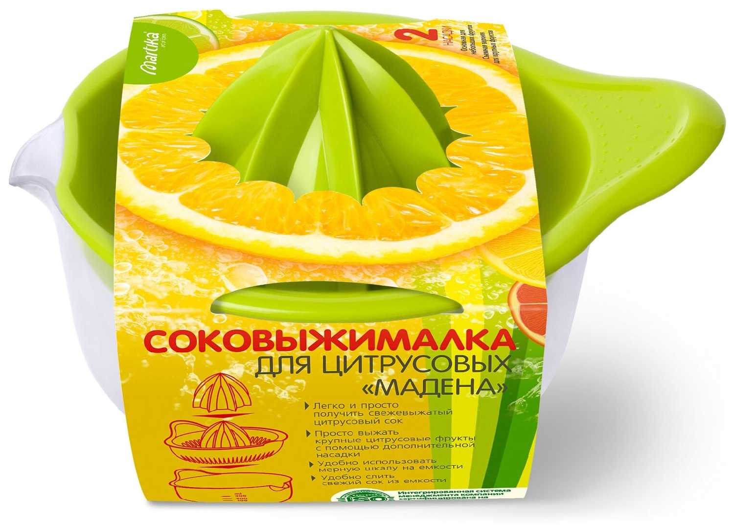 - Две сменные насадки для цитрусовых разного размера: