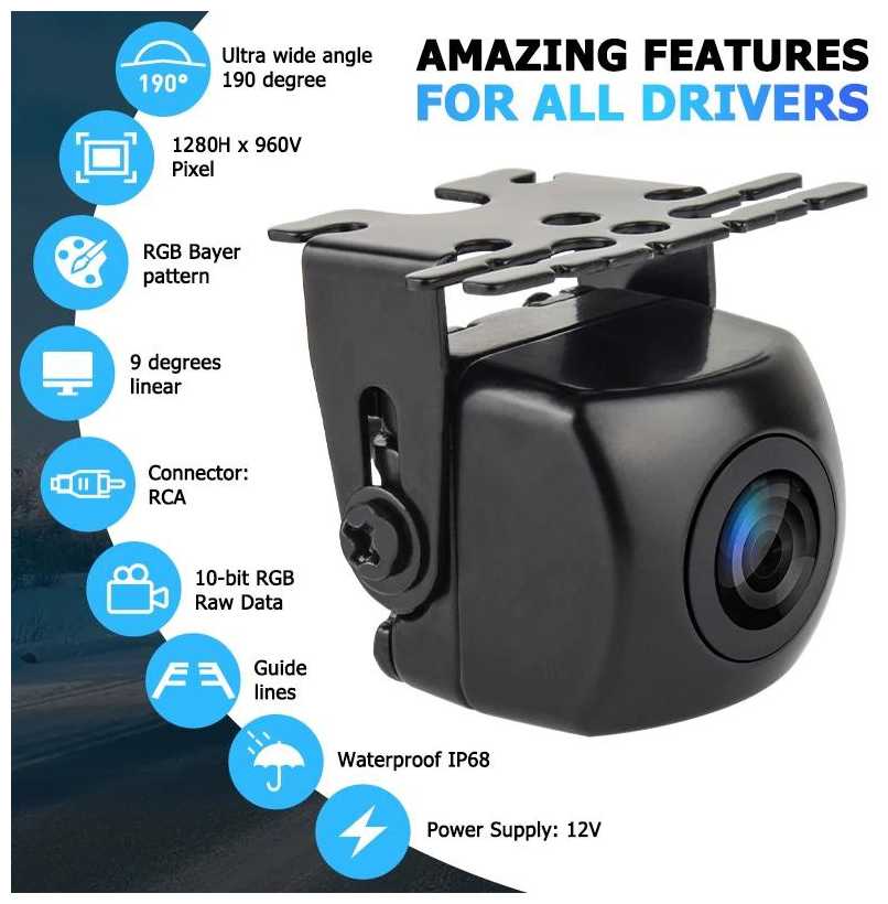 - + Отличная камера! Удобная установка, качество изображения прекрасное, даже в темное время суток! Регулируется угол наклона, можно использовать даже на низком бампере.