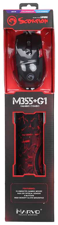 - + Мышь MARVO M355 сделана в асимметричном корпусе, её внешний вид указывает на то, что это игровой манипулятор. На левой боковой поверхности помимо двух стандартных кнопок "вперёд", "назад", есть дополнительная удлинённая клавиша, сверху, за прорезиненным колесиком прокрутки, идут две дополнительные кнопки отвечающие за чувствительность сенсора, а справа от них, ещё доп. кнопка с маркировкой BOSS. Кабель в нейлоновой оплетке с ферритовой защитой, длина 1.5 метра. Для мышки рекомендуется загрузить утилиту управления, в которой можно регулировать подсветку, уровень чувствительности и частоту опроса сенсора, настроить до девяти кнопок, так же имеется редактор макросов. Сенсор регулируется в диапазоне от 800 до 6400 DPI. Удобная, качественно выполненная, красивая мышь.