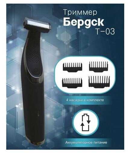 Бердск Т-03, для усов/бороды/висков/окантовки, 5 Вт, 4 насадки, АКБ