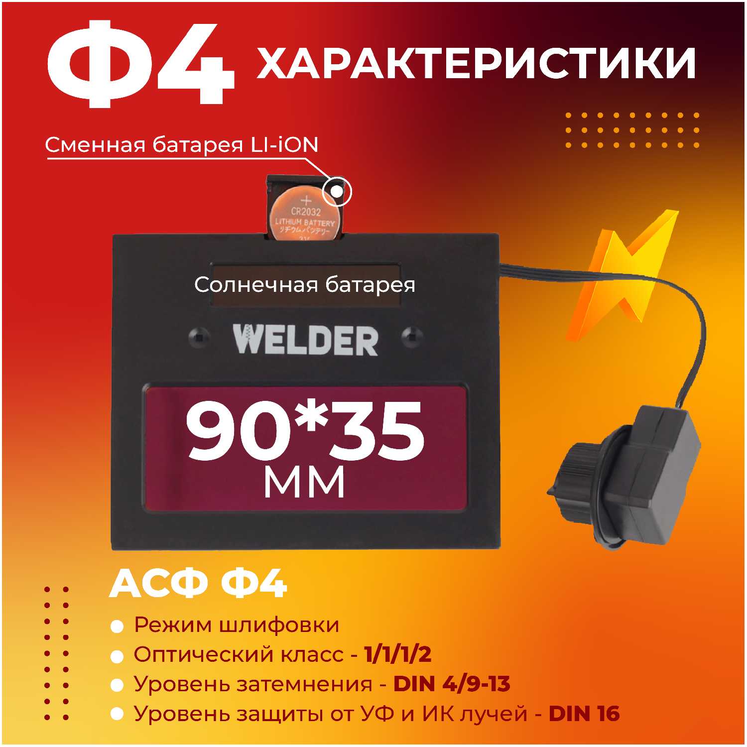 7.6/10 балловWELDER PRO Ф4 Хамелеон 90x35 мм, DIN 9-13 (Внеш. регул), матовая, в коробке