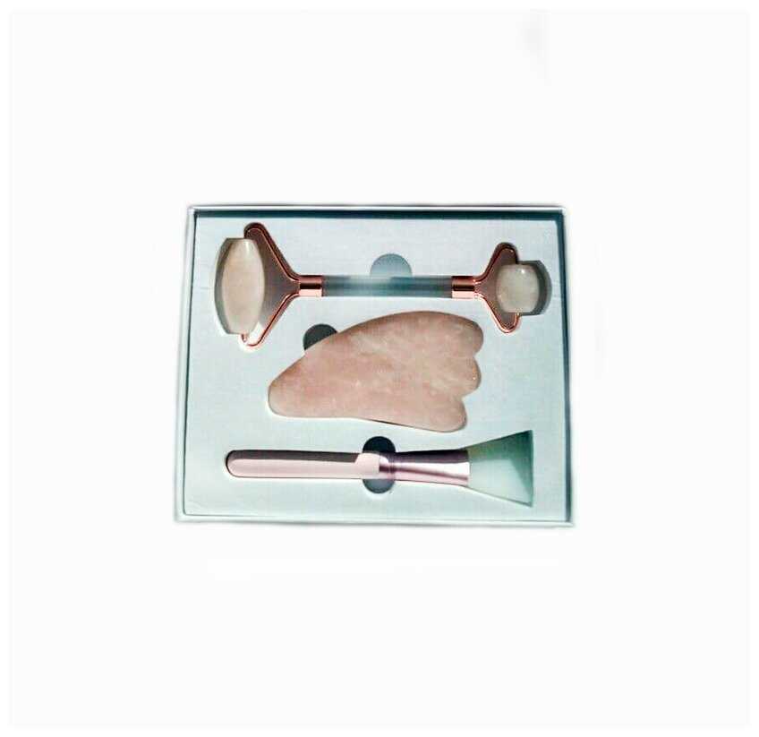 Allrest Набор для гуаша ролик+ лапка+кисть (роз. кварц) в подарочной упаковке