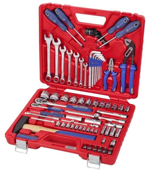 Аксессуары в комплекте : | гибкий удлинитель для головок, держатель для бит, переходник для головок, удлинитель для головок, фонарь, шарнир карданный для головок |