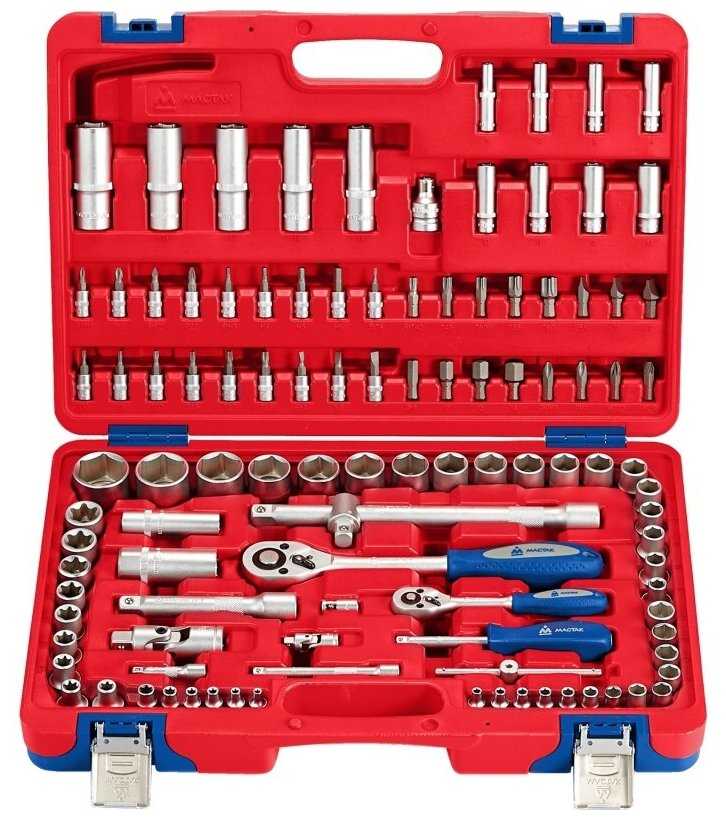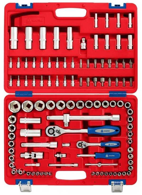 | Головки торцевые подробно : | 1/4" 6-гр.: 4 4.5 5 5.5 6 7 8 9 10 11 12 13 14 мм, удлинённые 1/4" 6-гр.: 6 7 8 9 10 11 12 13 мм, Torx 1/4": E4 E5 E6 E7 E8 E10, с битами 1/4": PH1 PH2 PZ1 PZ2 T8 T9 T10 T15 T20 T25 T27 T30 H3 H4 H5 H6 SL4 SL5.5 SL7, 1/2" 6-гр.: 8 10 11 12 13 14 15 16 17 18 19 21 22 23 24 27 30 32 мм, удлинённые 1/2" 6-гр.: 14 15 17 19 22 мм, Torx 1/2": E10 E11 E12 E14 E16 E18 E20 E22 E24, свечные 1/2": 16 21 мм, трещотка 1/4": 45 зубов 125 мм, вороток т-образный 1/4": 115 мм, карданный шарнир 1/4", отвертка-вороток 1/4" 150 мм, удлинитель 1/4": 50 100 мм, адаптер для бит F1/4>F1/4", трещотка 1/2" 45 зубов 250 мм, удлинитель 1/2": 125 250 мм, карданный шарнир 1/2", переходник с отверстием для воротка 3/8"х1/2", адаптер для бит F1/2">F5/16" |