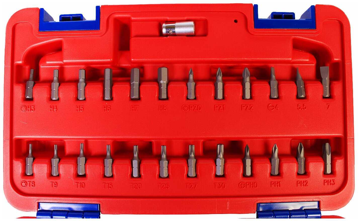 Биты подробно : | 1/4": PH0, PH1, PH2, PH3, PZ0, PZ1, PZ2, T8, T9, T10, T15, T20, T25, T27, T30, H3, H4, H5, H6, H7, H8, SL4, SL5.5, SL7 |