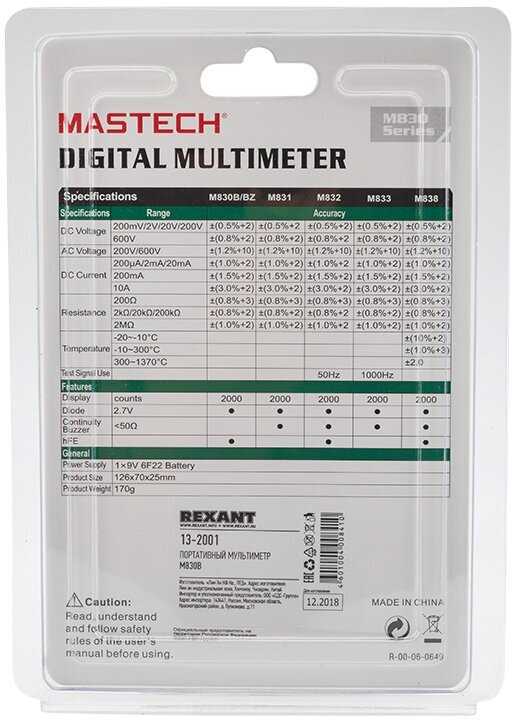 Отзывы о Мультиметр цифровой Mastech M830B
