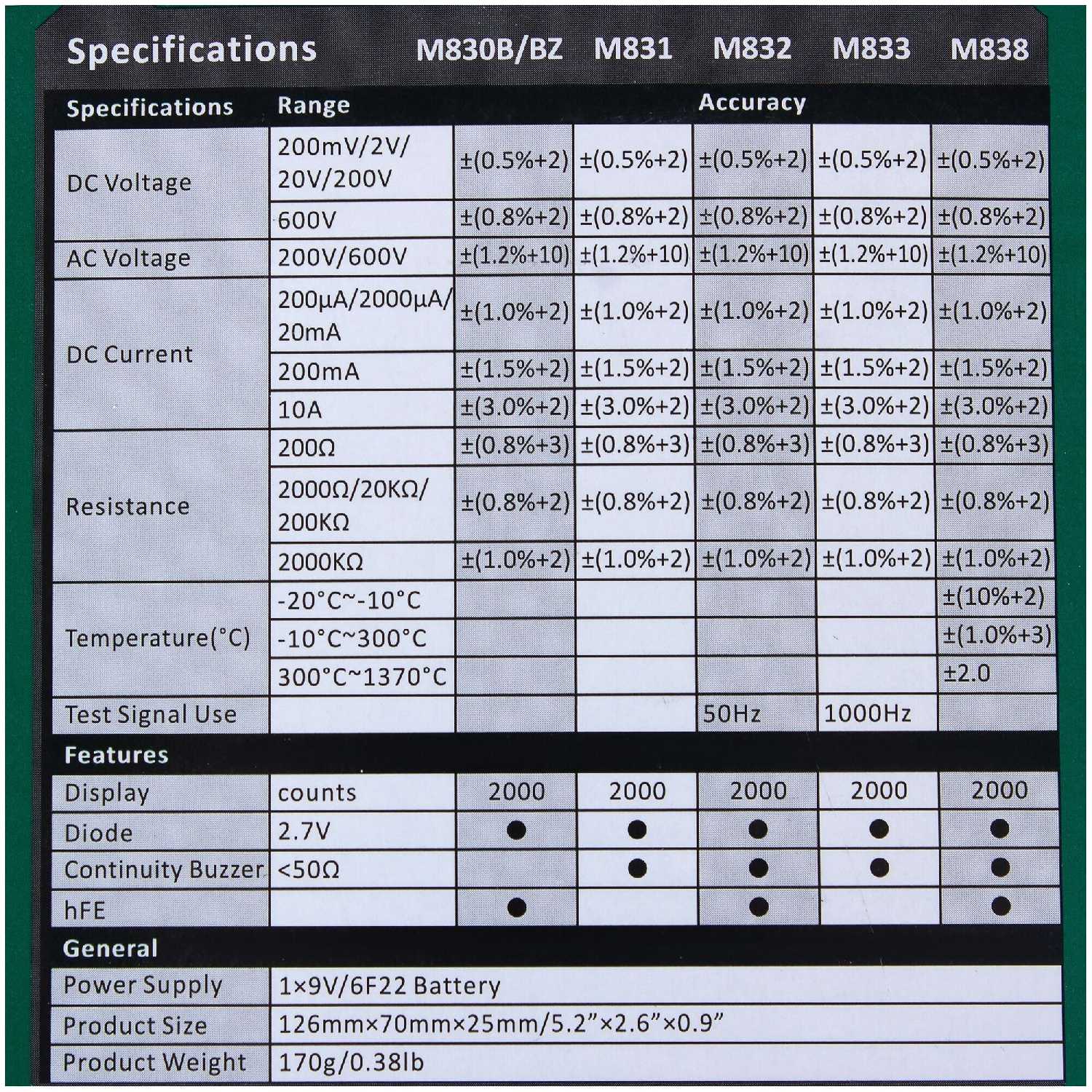 Характеристи Mastech M830B