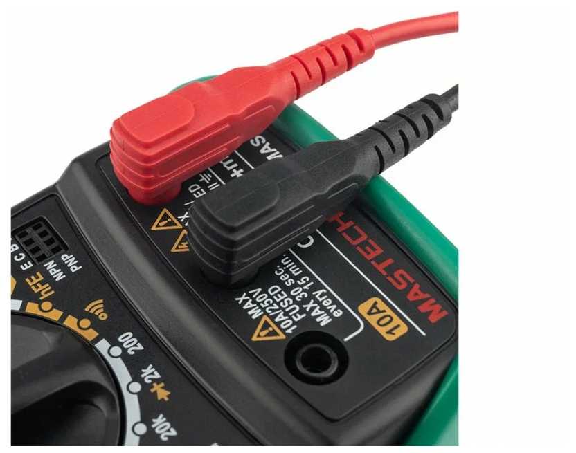 - Встроенный предохранитель на 10 А защищает прибор при измерении высоких токов.