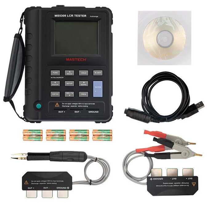 | Дополнительная информация : | Комплектация: LCR-метр, Зажим Кельвина, SMD-пинцет, Кабель для подключения к компьютеру, CD диск, Сумка, Руководство по эксплуатации, Батарея |