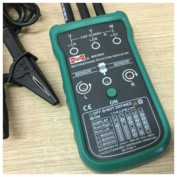 | Дополнительная информация : | номинальное напряжение определения фазы: 120 В – 400 В АС, номинальное напряжение определения направления вращения: 1 В – 400 В АС, частотный диапазон: 2 Гц – 400 Гц, тестовый ток (на фазу): < 3.5 мА |