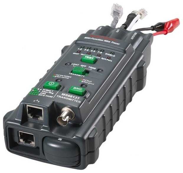 | Дополнительная информация : | отслеживание трассы прокладки кабеля тестирование коаксиальных кабелей тестирование неэкранированных и экранированных витых пар тестирование LAN кабеля обнаружение места разрыва кабеля тестирование замкнутых и разомкнутых кабелей распознание состояния телефонной линии, элементы: передатчик (основной) приемник согласующий модуль |
