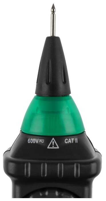 При первом включении в режим «TEST» можно и нужно проверить наличие батареек в мультиметре. При их наличии, загорится индикатор. При вращении конуса выдвигается или убирается металлический щуп. Можно измерить постоянное (U-) и переменное (U~) напряжение, «прозвонить» электрическую цепь, измерить сопротивление участков цепи или ее элементов (например, резисторов), а также протестировать диоды на целостность. Есть возможность выбора дополнительных режимов кнопкой F (func), т.е. режим измерения постоянного (U-) или переменного (U~) напряжения, а также режим измерения сопротивления, проверки диодов или «прозвонки» цепи. Если точность показаний Вам не важна, можно перейти в ручной выбор диапазона нажав кнопку R (range). Есть возможность регистрации максимальных значений кнопкой «MAX HOLD» и удержание измеренных показаний кнопкой «DATA HOLD». Есть звуковой сигнал, что очень удобно, а также автоматическое отключение эл. питания. В общем рекомендую, подойдет для измерения электрических цепей макс. постоянного U- и переменного U~ до 600 В. Базовая погрешность измерений прибора до 1%, что само по себе уже неплохо. Прибор прост и удобен в эксплуатации. Качество исполнения хорошее. Комплектация отличная. По пяти бальной системе можно поставить твёрдую 4ку.