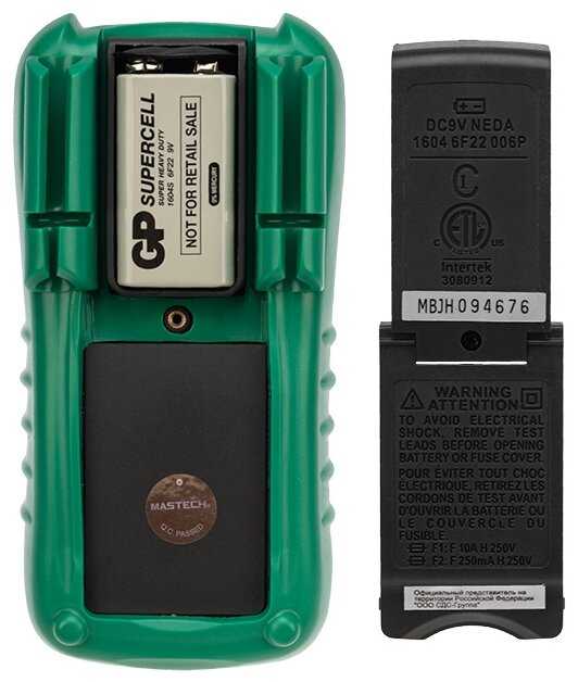 - Работает от трёх AAA батареек, которые гораздо проще найти, а не от кроны. Понятно, что в магазине всё есть, но если в ходе работ батарейки в приборе внезапно сели, то AAA практически всегда можно найти, хоть из пульта, хоть из часов, а вот крону найти малореально.
