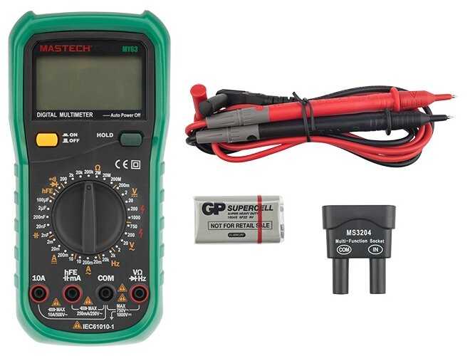 | Функции : | выявление повреждения проводки и соединения, измерение емкости конденсаторов, измерение переменного напряжения, измерение постоянного напряжения, измерение работоспособности диодов и транзисторов, измерение силы переменного тока, измерение силы постоянного тока, измерение сопротивления, измерение температуры, измерение частоты |