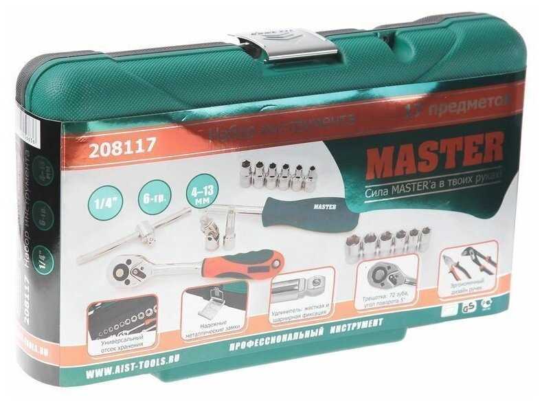 Отзывы о Набор инструментов 1/4" 6-гр. 17 предметов Master 208117-M