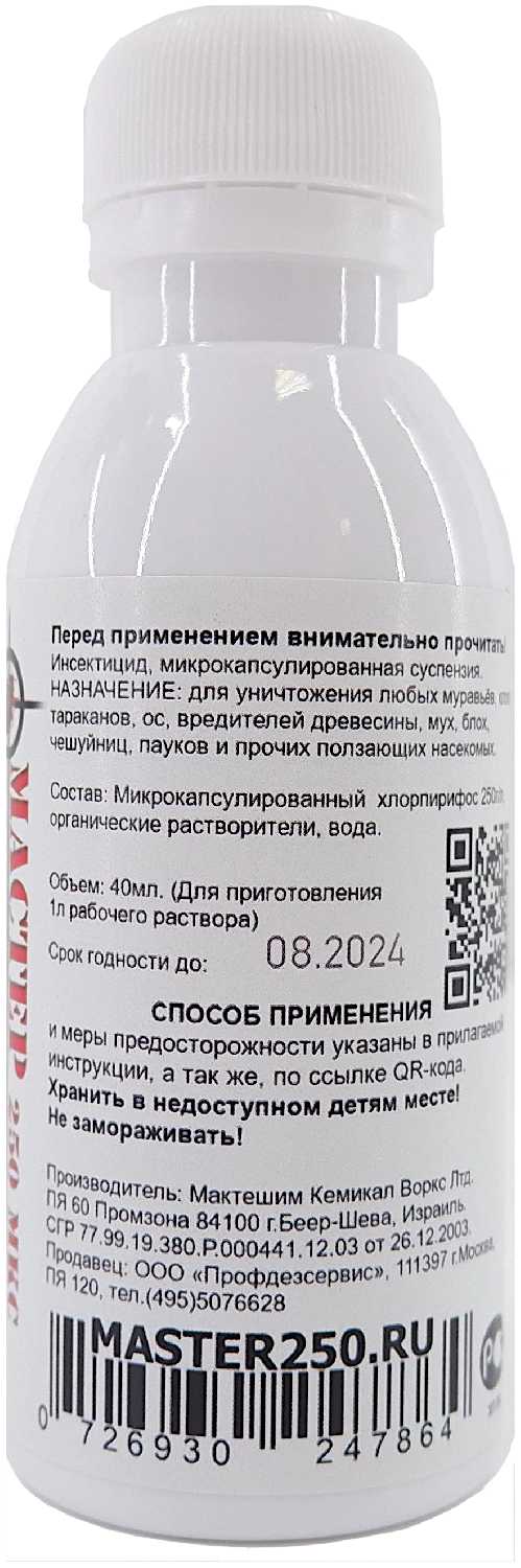 Характеристи Мастер 250 Препарат для уничтожения насекомых