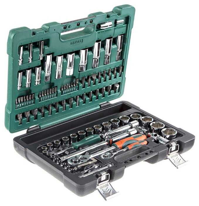 Хороший набор, состоит из 94 предметов, есть все самое необходимое для работы с авто по головкам/битам. Также имеется дополнительная свободная ниша, можно положить дополнительный инструмент или мелкие метизы. Набор компактный из крепкого пластика, места много не занимает, использую для самостоятельного ремонта автомобиля. Головки не трескаются, не сыпятся. Биты не сворачиваются. Использую не так часто, качеством доволен.