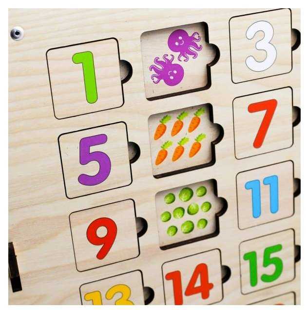 - + Очень хороший бизиборд! Рекомендую! Редко встречаются деревянные паззлы с цифрами, числами от 1 до 20, обычно только от 1 до 10. Сыну нужно было подтянуть счет от 10 до 20. С данным бизибордом отлично это сделал, в 3 года. Сейчас 5 лет. Всё еще с удовольствием играет, повторяет буквы, цифры. Отличный вариант на подарок!