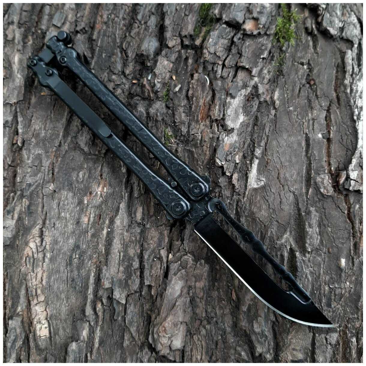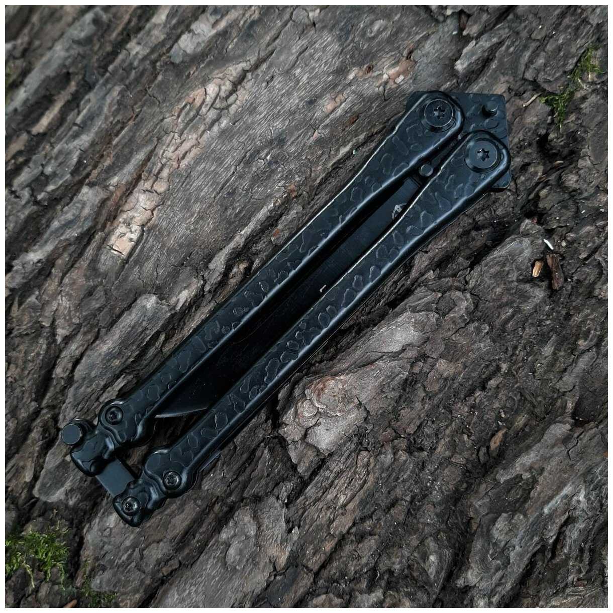 Нож классный, дизайн необычный. Но будьте осторожнее, когда будете учиться красиво им владеть. Было дело, в моменте потерял над ним контроль, прям едва задев палец, нож прошёл по нему скользом, по итогу кровь не останавливалась минут 15, т к. порез очень тонкий, практически ювелирный. В общем к покупке рекомендую, но учиться владеть ножом бабочкой всё же лучше на тренировочных, не заточенных...