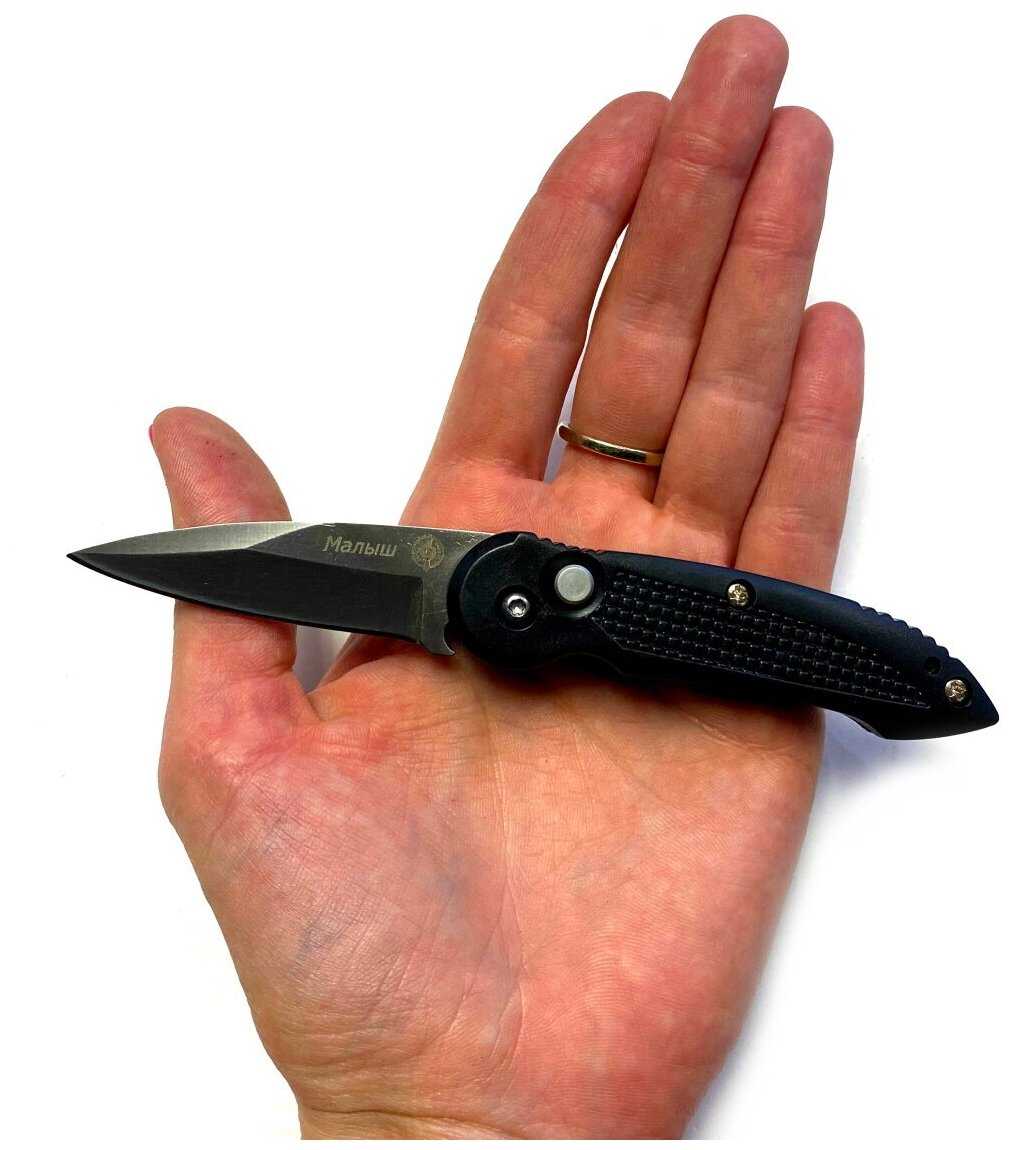 - + Несмотря на маленький размер, нож рабочий, им можно поточить карандаш, вскрыть посылку, почистить яблоко, картошку, нарезать колбасу и т.д. Пришел острый, сильная пружина при выбросе. Следует крепче держать.