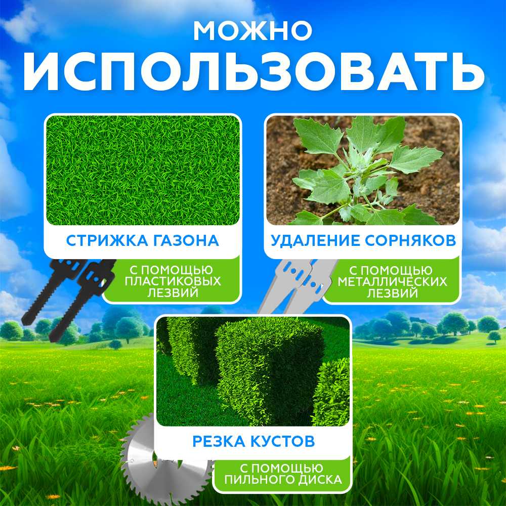 Сравнительный анализ режущих элементов: Комплектация режущими насадками является одним из самых проблемных аспектов. Вопреки ожиданиям, сформированным изображениями в карточке товара, пользователи массово сообщают, что вместо заявленного пильного диска с победитовыми напайками получают простой стальной диск низкого качества. Этот диск характеризуется пользователями как чрезвычайно тупой, не имеющий даже минимальной разводки, и быстро приходящий в негодность при контакте с мелкими деревяшками. Пластиковые ножи, идущие в комплекте, оцениваются как практически бесполезные, одноразовые и слабые, ломающиеся почти сразу. Единственным относительно работоспособным вариантом пользователи признают металлический нож, который, по их словам, "рубит легко" и справляется с одуванчиками.