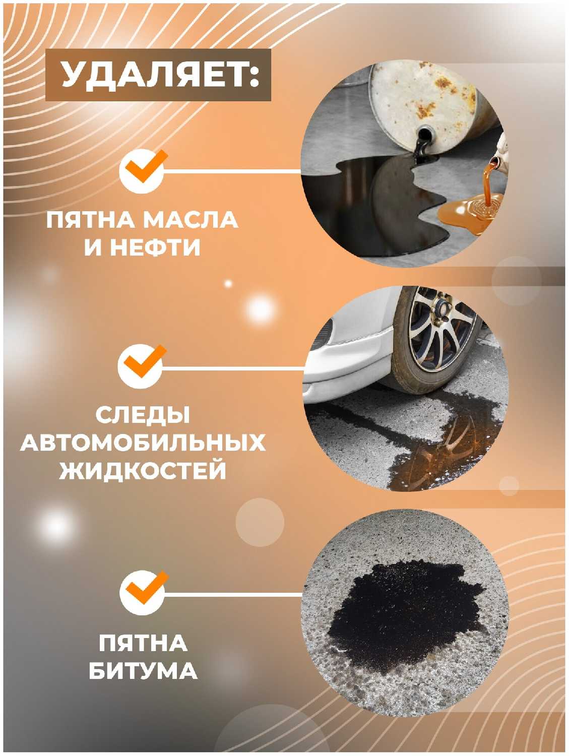 | Назначение : | от автомобильной смазки, от битума, от гудрона, от жирных пятен, от масляных пятен, от смол |
