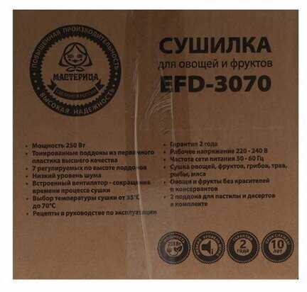 Характеристи Мастерица EFD-3070 [7 поддонов]